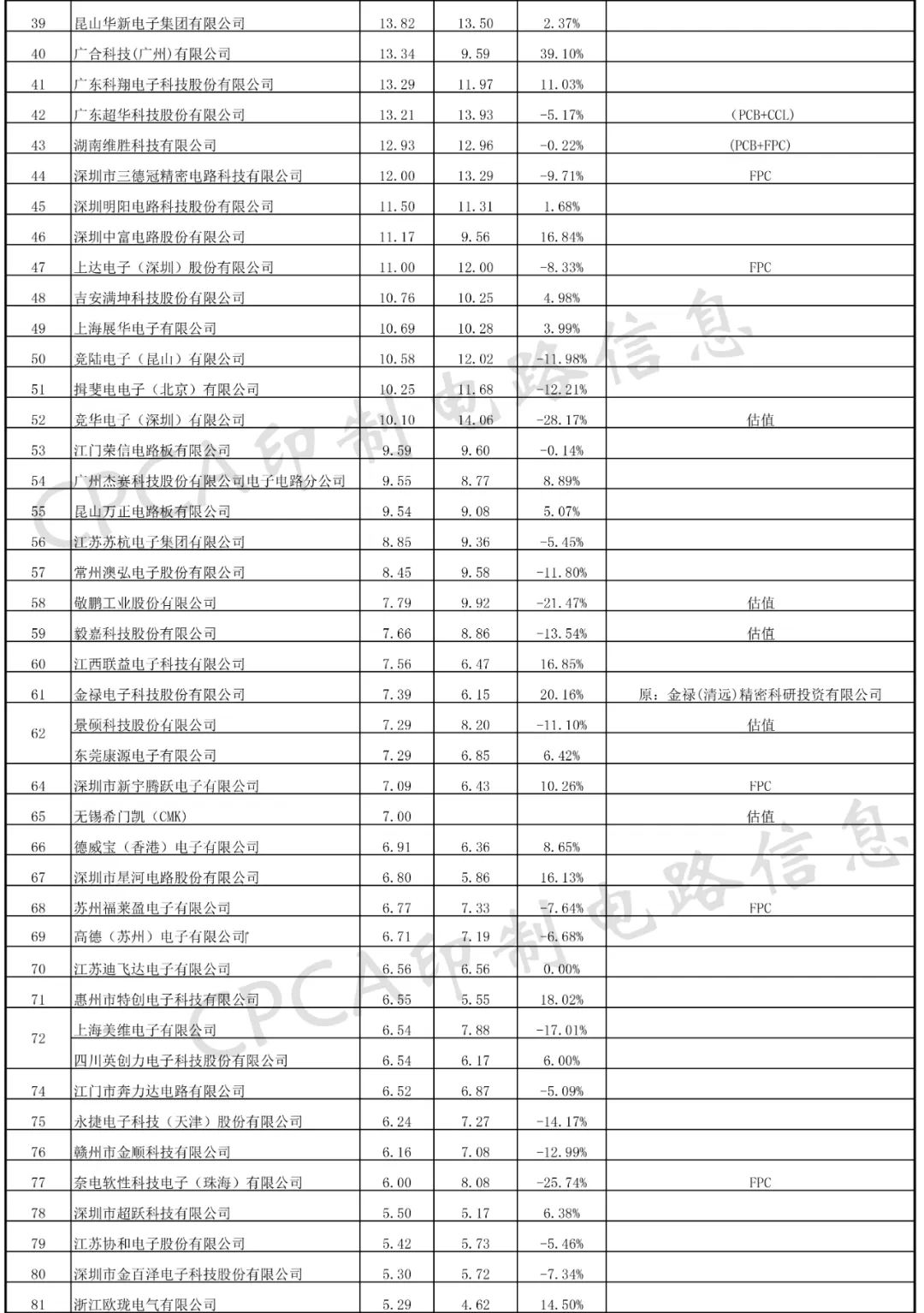 4. 綜合(he)與内資(zi)141家PCB企業(ye)2019/2018同比情(qing)況: