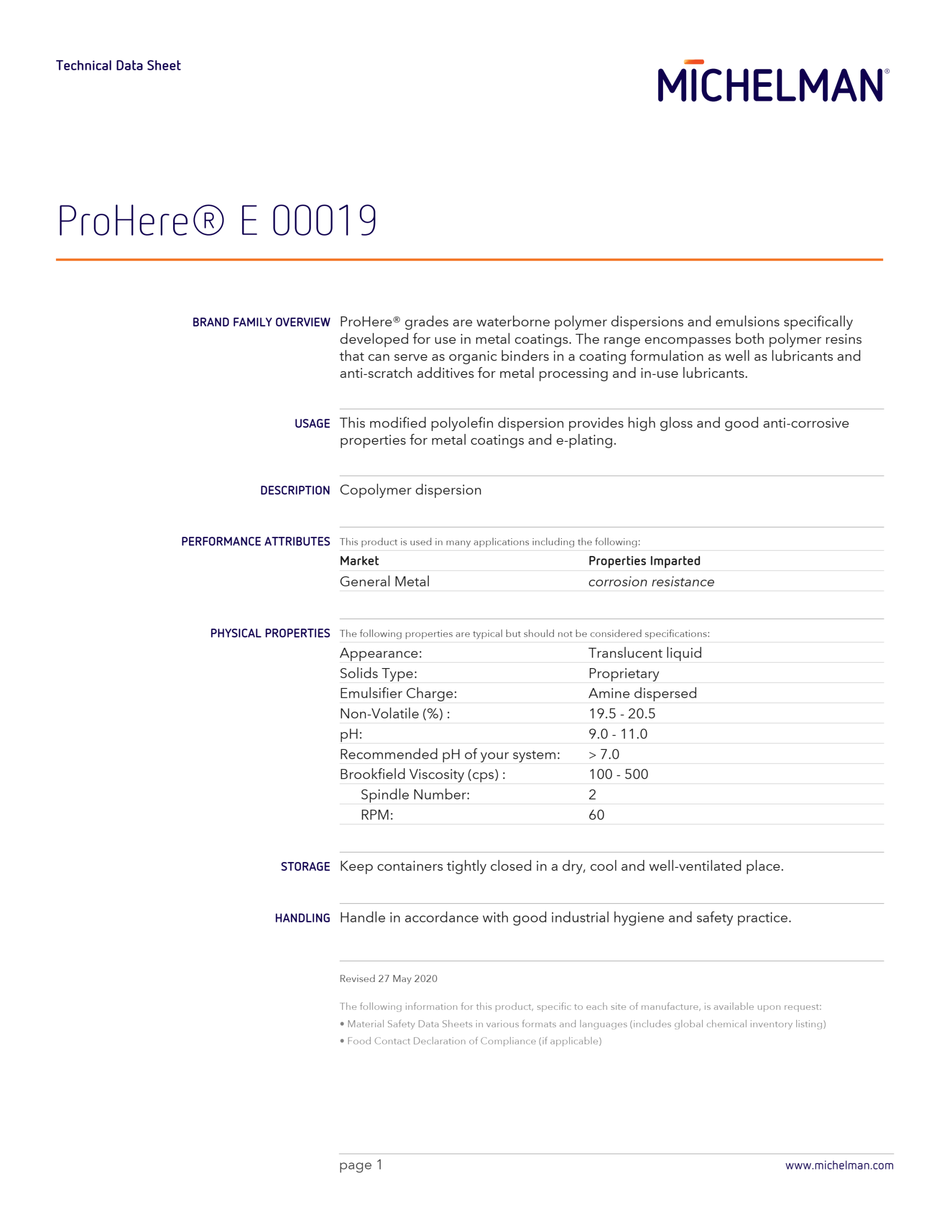 BRAND FAMILY OVERVIEW ProHere® grades are waterborne polymer dispersions and emulsions specifically developed for use in metal coatings. The range encompasses both polymer resins that can serve as organic binders in a coating formulation as well as lubricants and anti-scratch additives for metal processing and in-use lubricants.