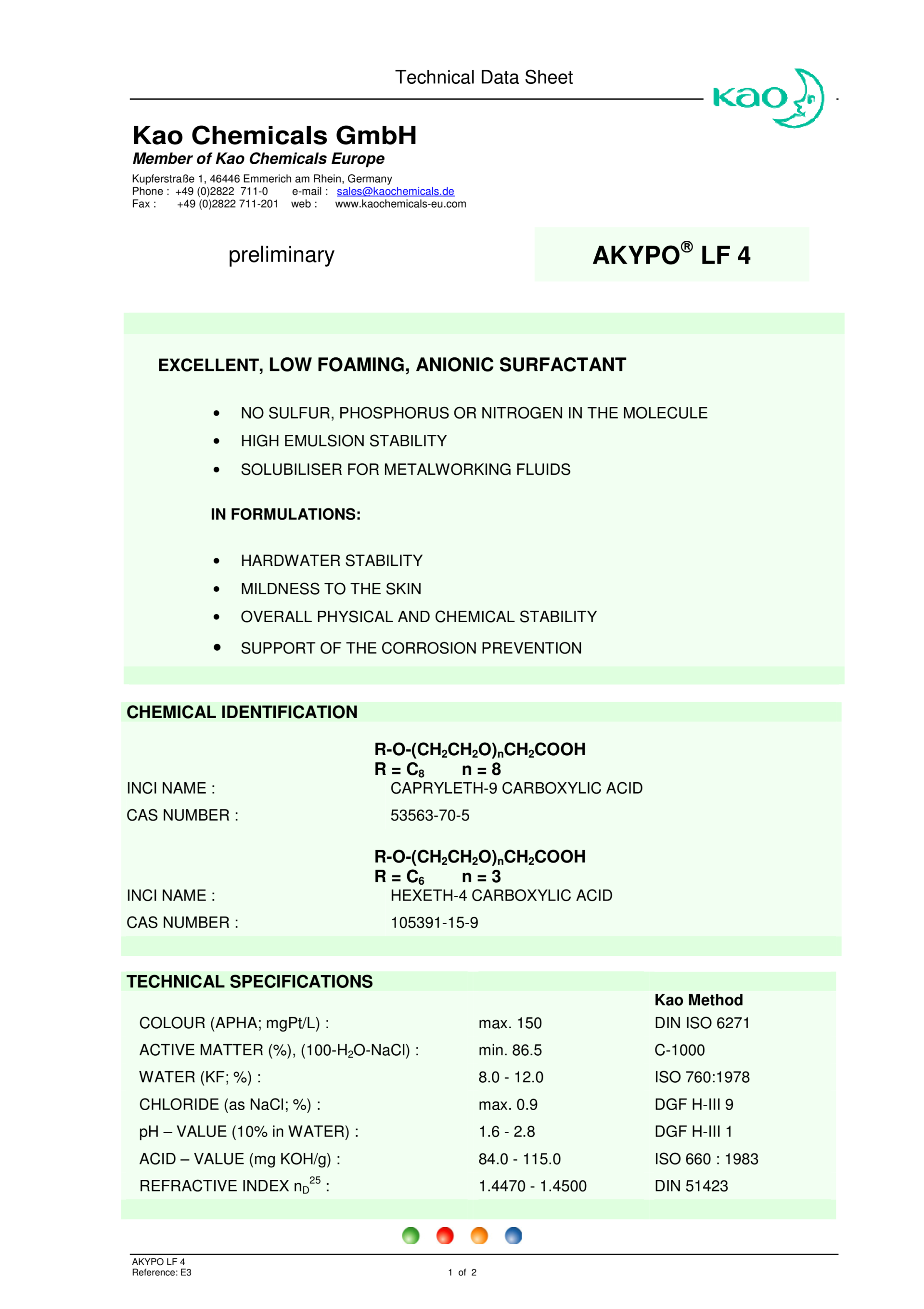 Ionic nature : anionic / nonionic (depending on ph-value)