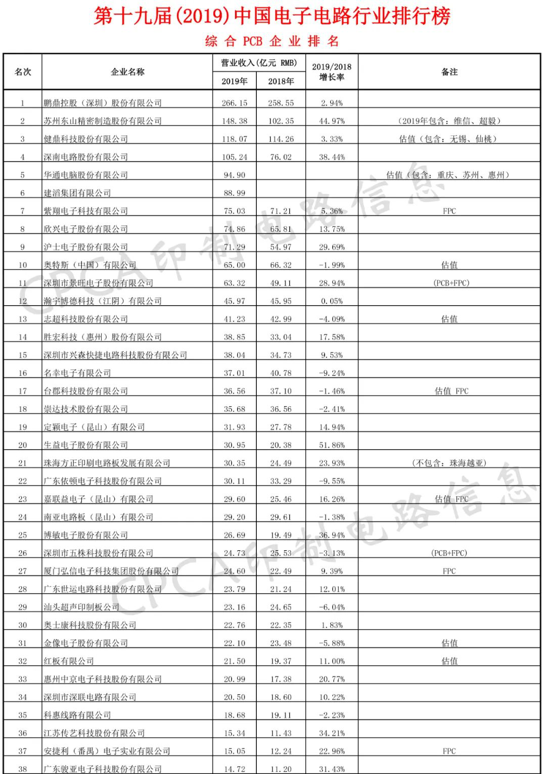 《2019中(zhong)國電子(zi)電路行(hang)業排行(hang)榜》