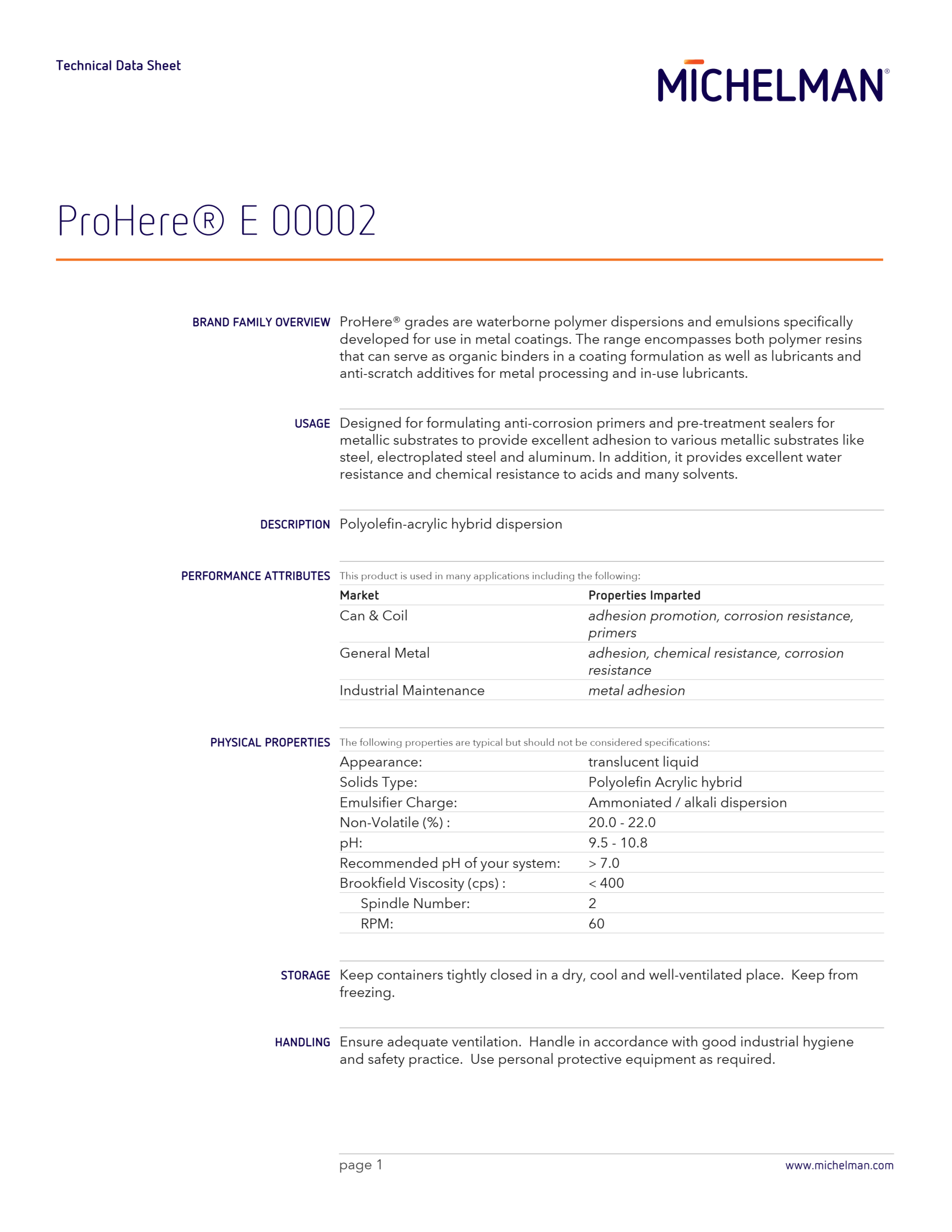 BRAND FAMILY OVERVIEW ProHere® grades are waterborne polymer dispersions and emulsions specifically developed for use in metal coatings. The range encompasses both polymer resins that can serve as organic binders in a coating formulation as well as lubricants and anti-scratch additives for metal processing and in-use lubricants.