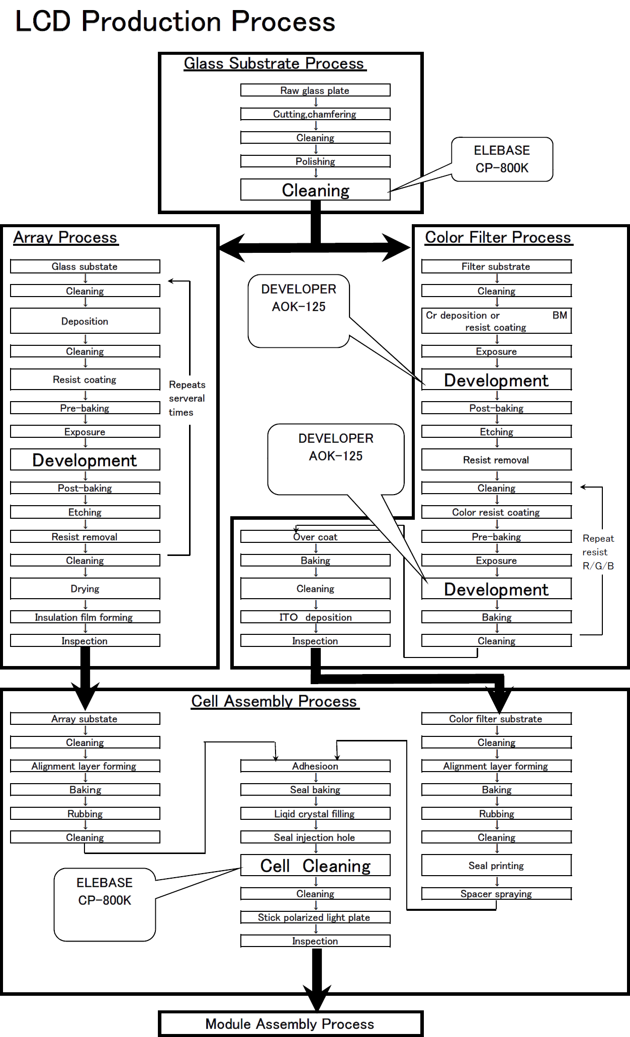 LCD生産過(guo)程使用的(de)濕化學品(pin)(表面活性(xing)劑、清洗劑(ji)、顯😗影液)。