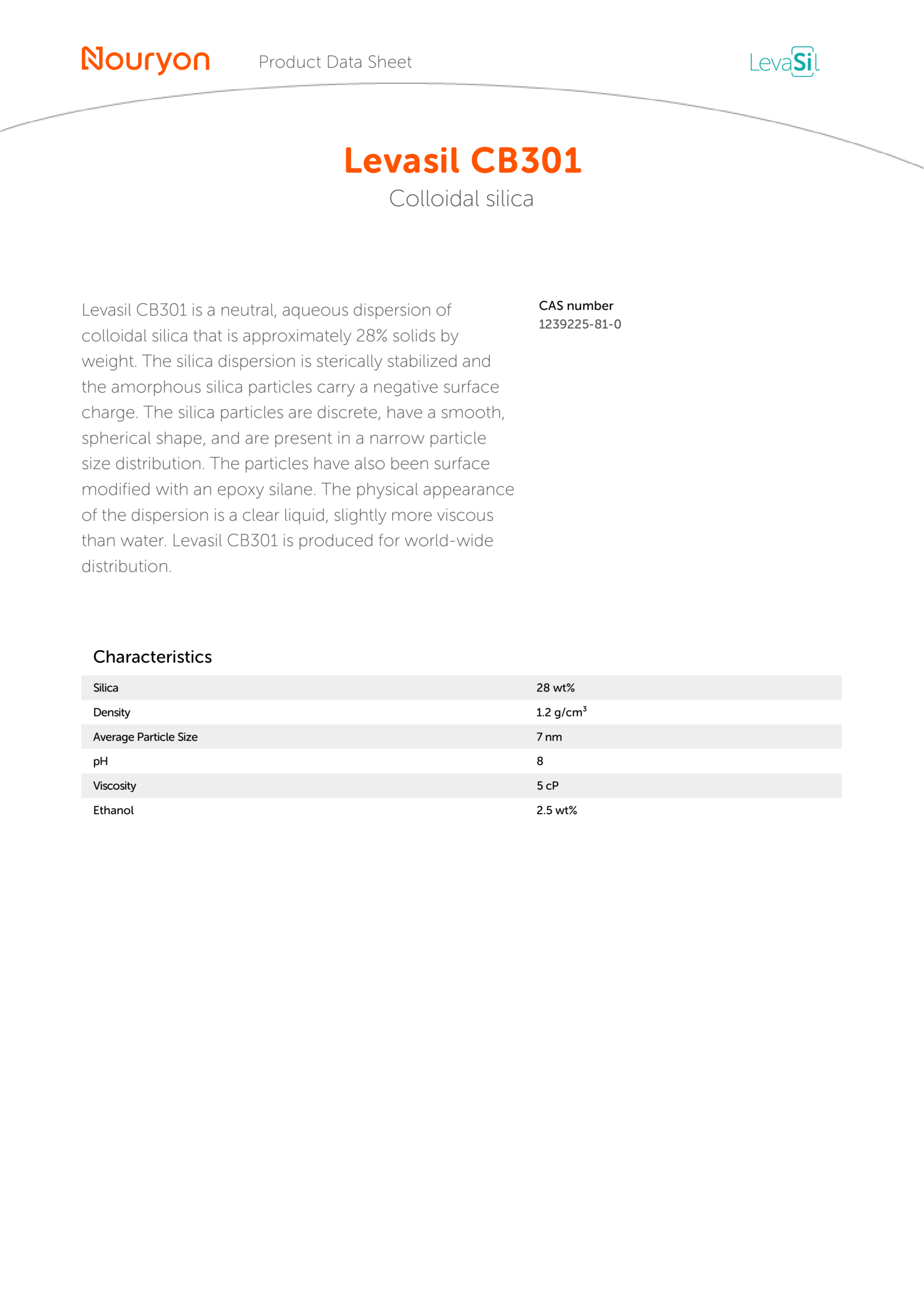 Nouryon 諾力昂(ang) Levasil CB301 Colloidal silica水性納(na)米二氧(yang)化矽分(fen)散液