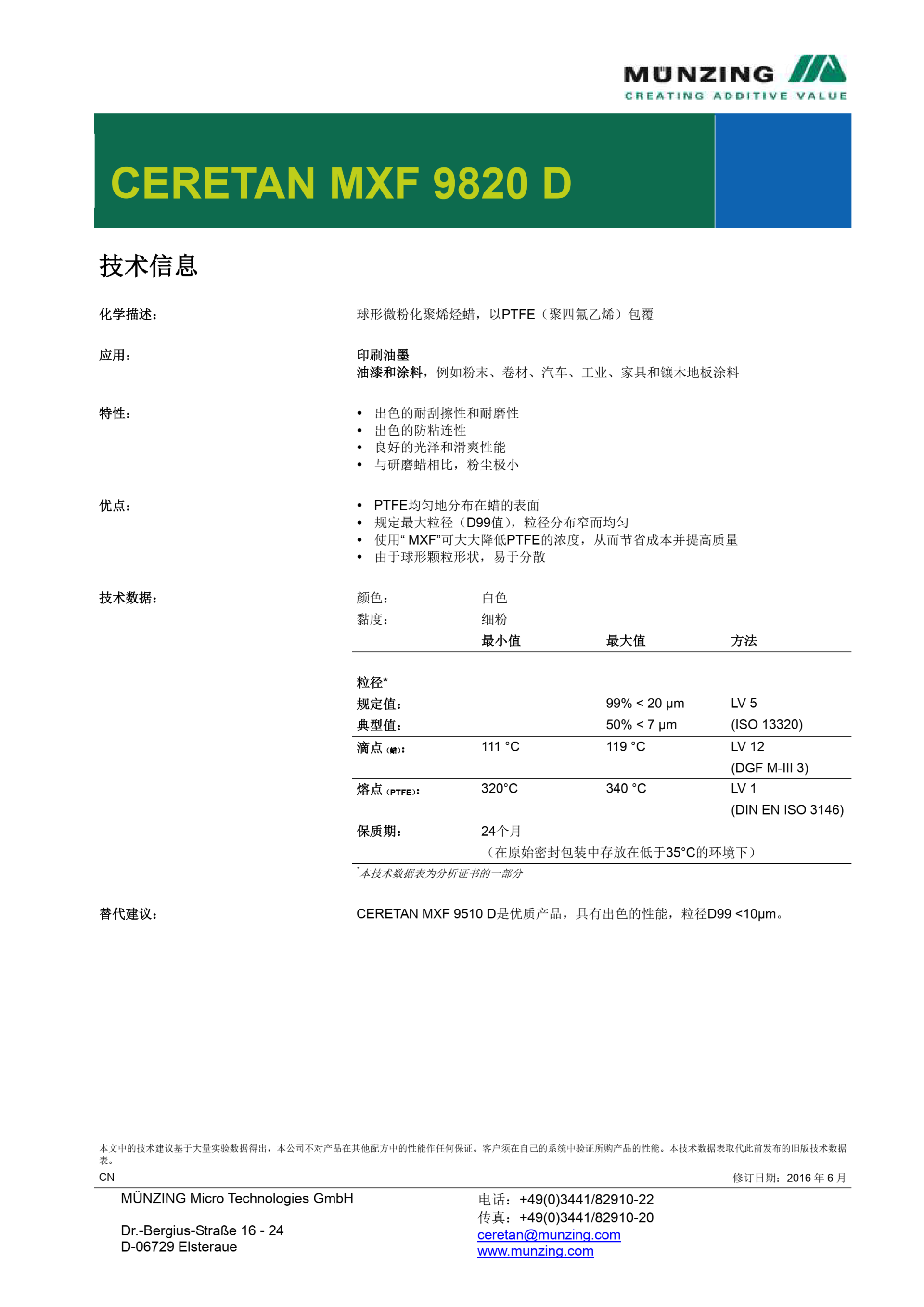 替代(dai)建議: CERETAN MXF 9510 D是(shi)優質産(chan)品,具有(you)出色的(de)性能,粒(li)徑D99 <10μm。