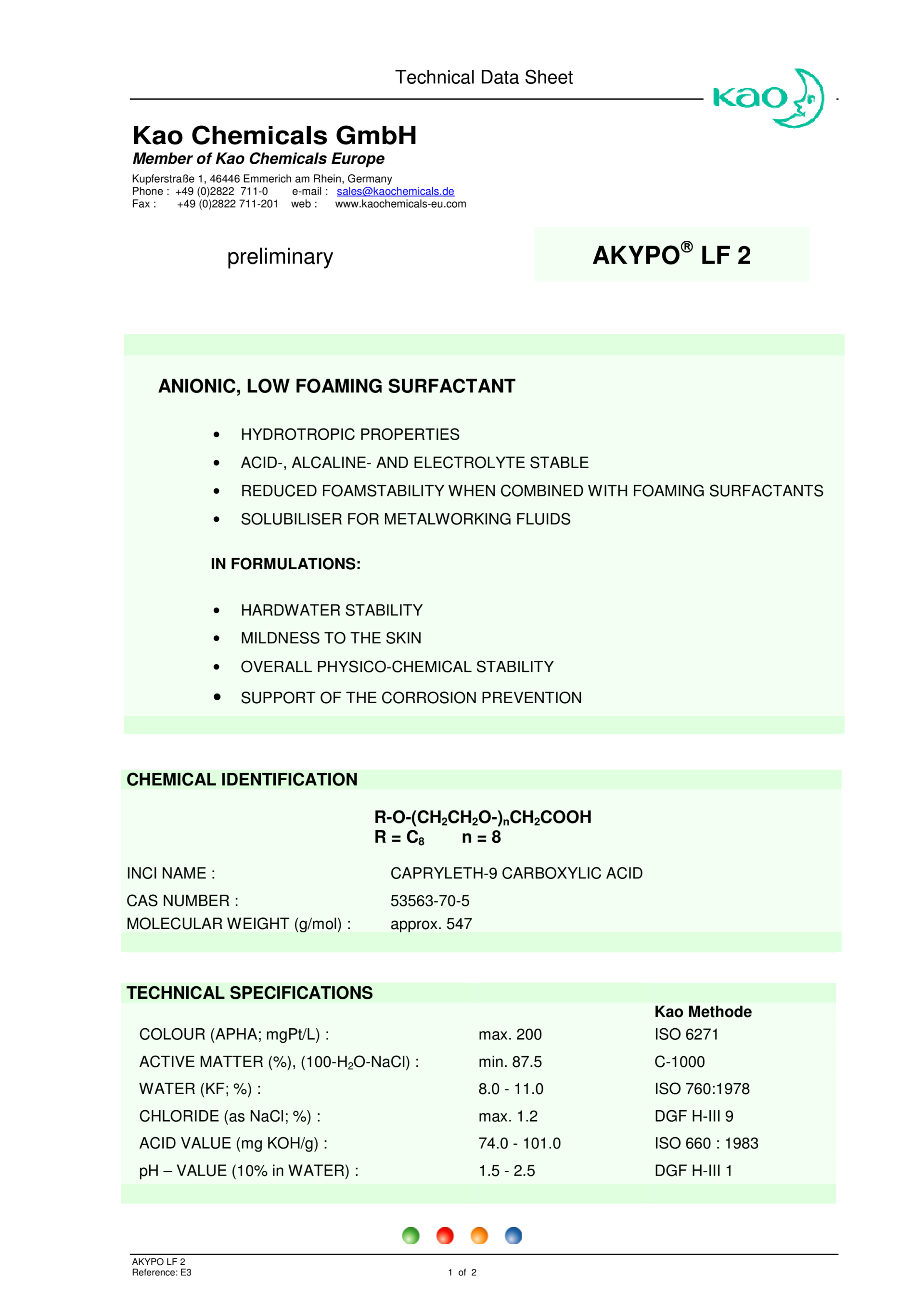 Ionic nature : anionic / nonionic (depending on ph-value)