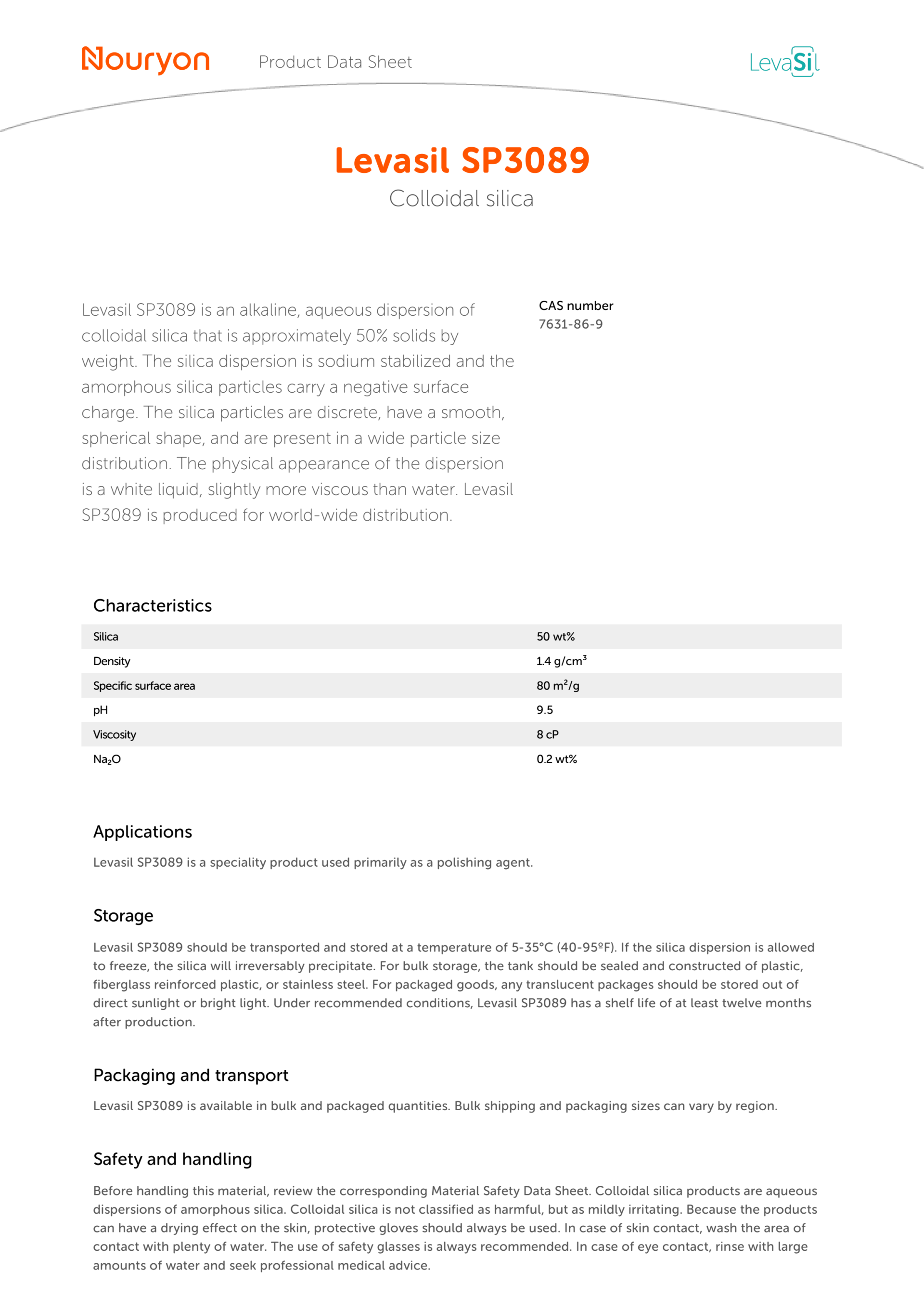 諾力(li)昂Nouryon Levasil SP3089膠體(ti)納米二(er)氧化矽(xi)分散液(ye)